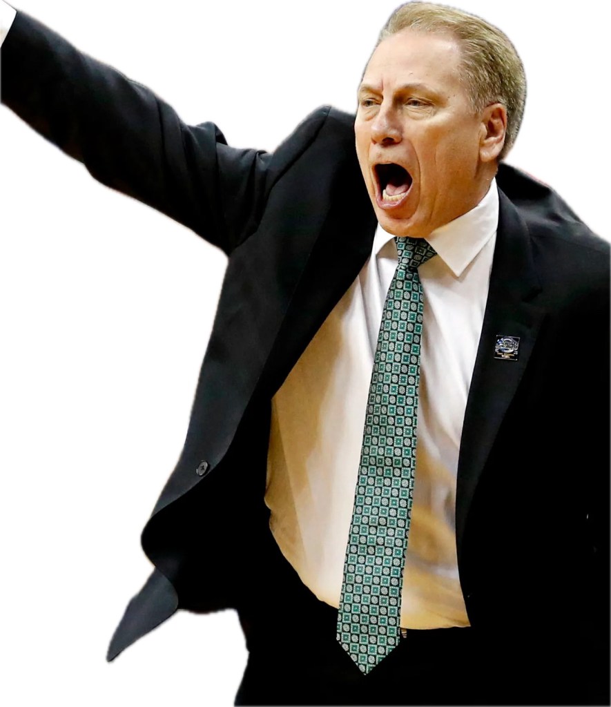 The coach for MSU is Tom Izzo who is from Iron Mountain located in the upper peninsula of Michigan and has been the coach as long as I have been watching Spartan basketball.